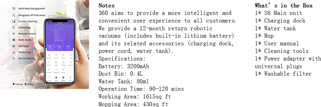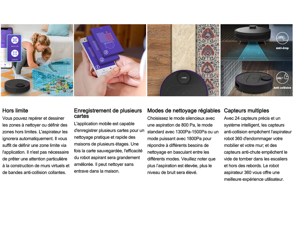 360 S6 Smart Saugroboter Staubsauger Automatisch APP 3200mAh Roboterstaubsauger Vacuum Reinigung Schwarz
