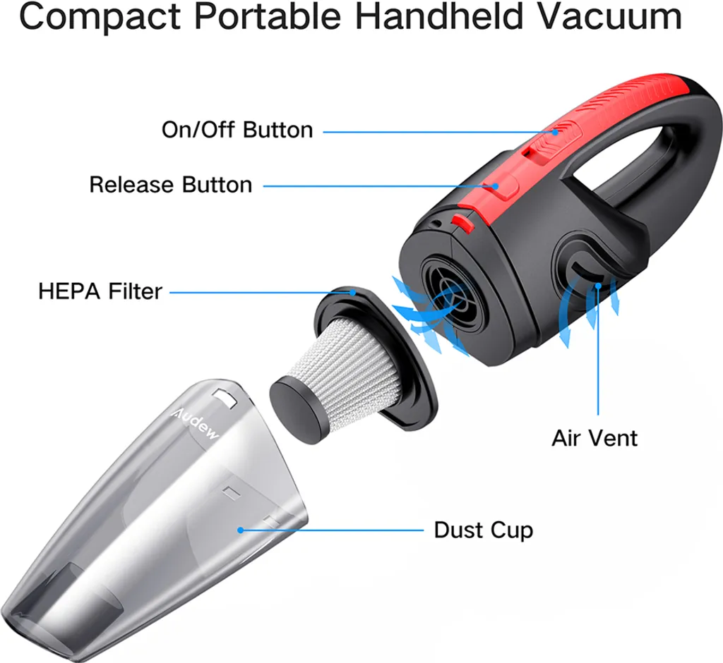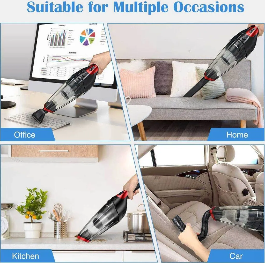 Andeman Staubsauger Kabellos Handstaubsauger Akku Autosauger Nass/Trocken Funktion Für Haus Und Auto 120W, 2200mAh 7200PA