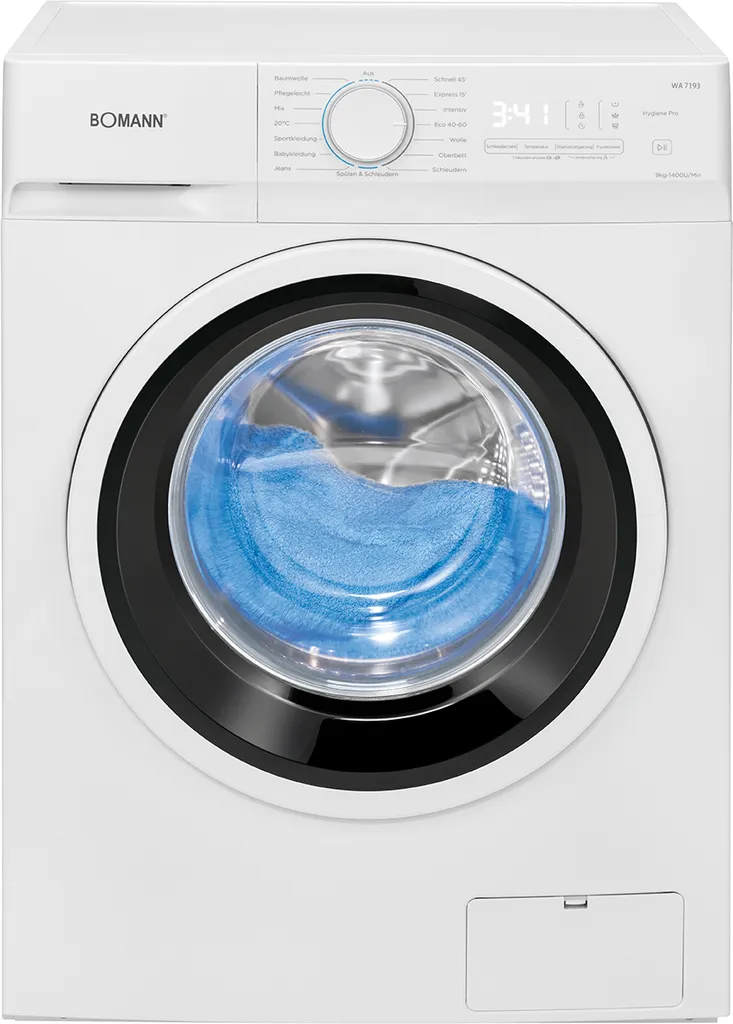Bomann WA 7193 Waschmaschine, 9kg, 15 Waschprogramme, 1.400 U/min.(max), LED-Display, Kindersicherung, Hygiene Pro, Weiß