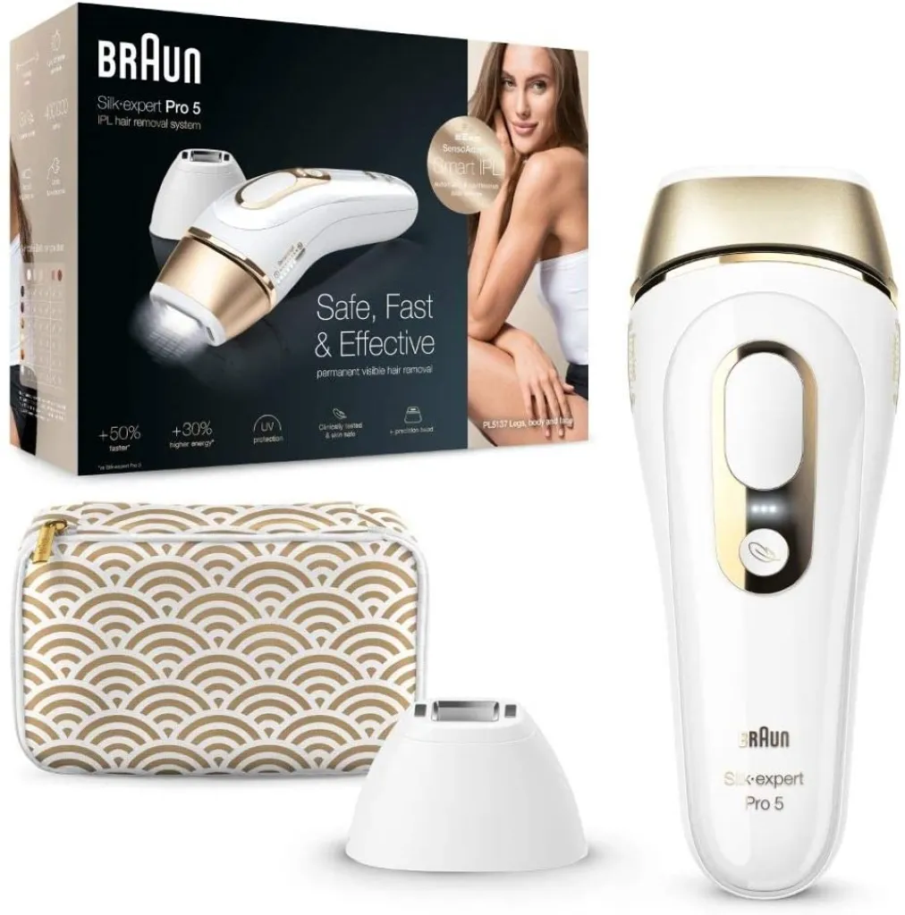Braun Silk-Expert Pro 5 PL5137 IPL-Haarentfernungsgerät Mit Präzisionsaufsatz – Beine, Körper, Gesicht – Weiß/gold