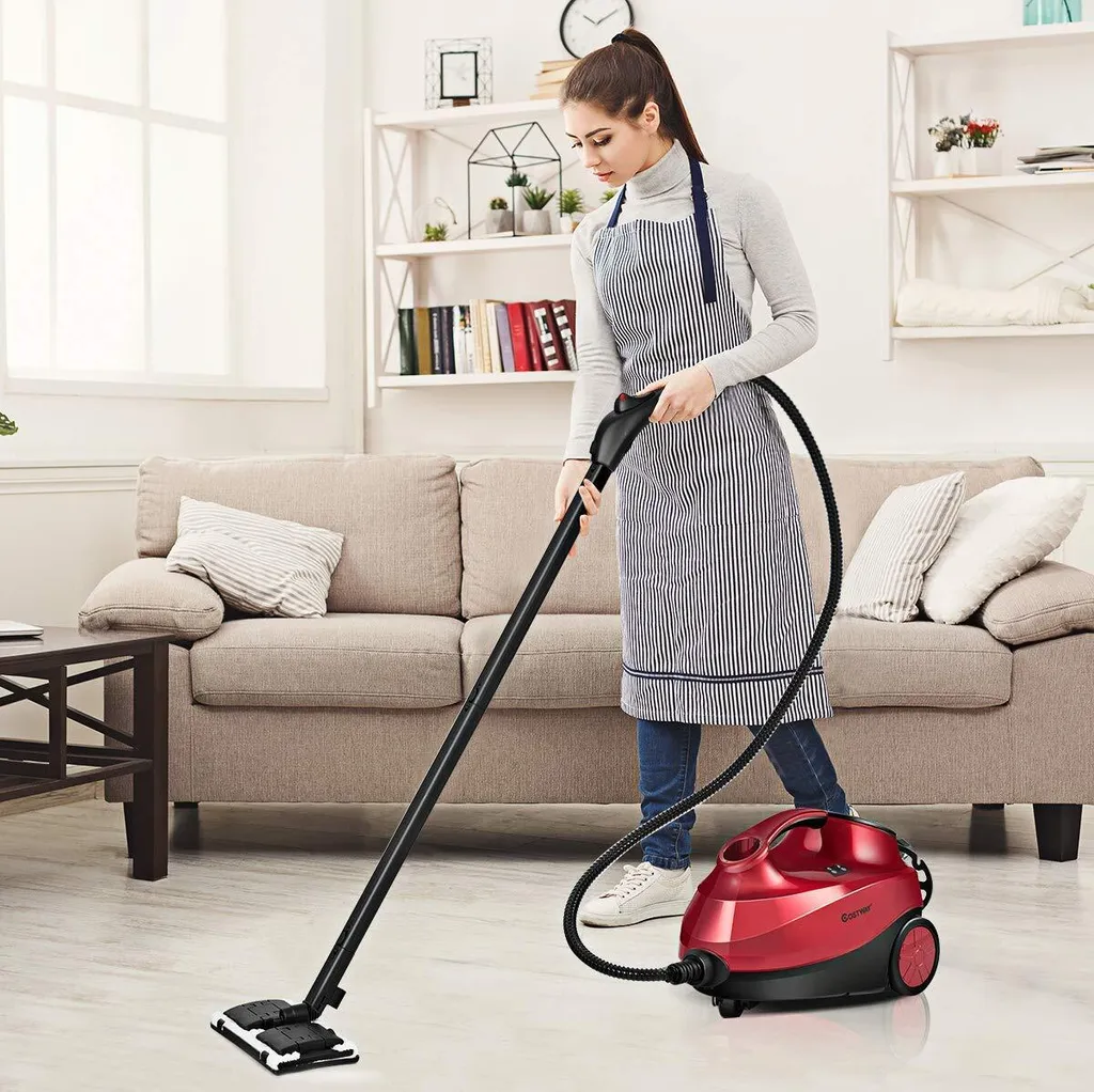 COSTWAY Dampfreiniger Mit 19 Zubehoerteilen, Bodendampfreiniger Fuer Teppiche, Fussboeden, Fenster Und Autos / 2000W / 4 Bar / 1,5L Tank/bis 108℃ / LED/Dampfzeit Bis 45 Min.