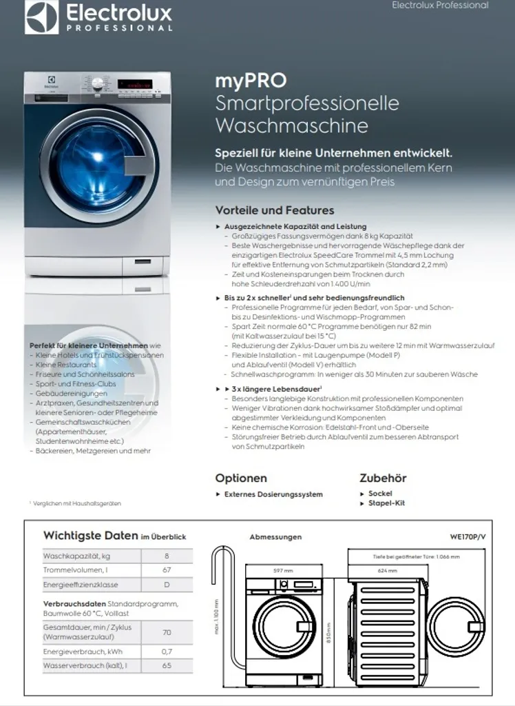 Electrolux Waschmaschine MyPRO Professional 8kg 1400U/min Edelstahl WE170V