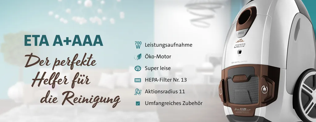 Schreibe die erste Rezension für „ETA Bodenstaubsauger CANTO II ANIMAL ETA349290020, Eco Motor, 700 Watt, Mit Beutel, Aktionsradius 11 M“ Antwort abbrechen