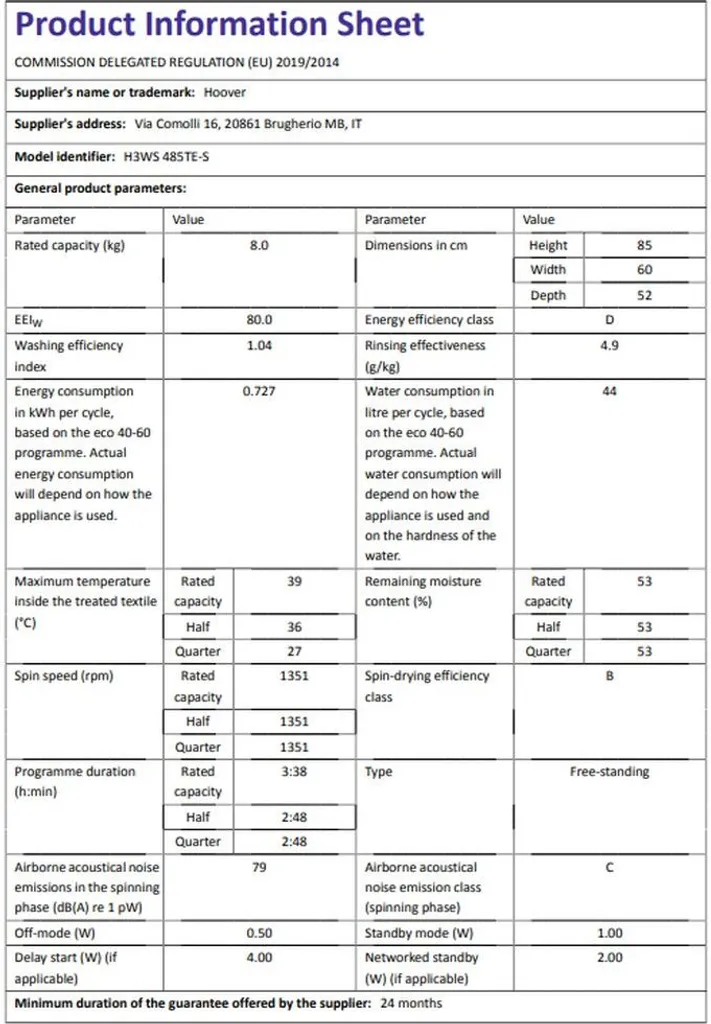 Hoover H-WASH 300 H3WS 485TE-S Waschmaschine / 8 Kg / 1400 U/Min / Smarte Bedienung Mit Wi-Fi Und Bluetooth / Spezielle Extra Care-Programme Zur Wäschepflege / Active Steam Dampffunktion