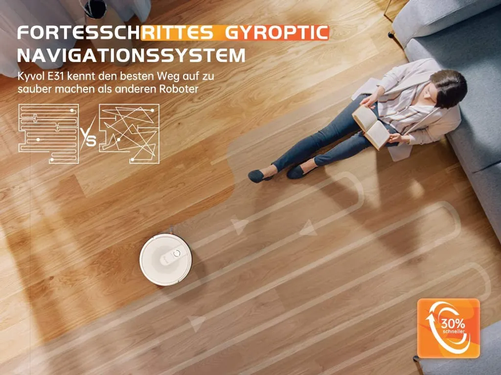 Kyvol E31 Saugroboter Mit Wischfunktion 2200Pa Wischroboter, 150Min. Laufzeit, Smart Navigation, Funktioniert Mit Alexa,ideal Für Tierhaare, Teppiche Und Hartböden, Weiß [+]