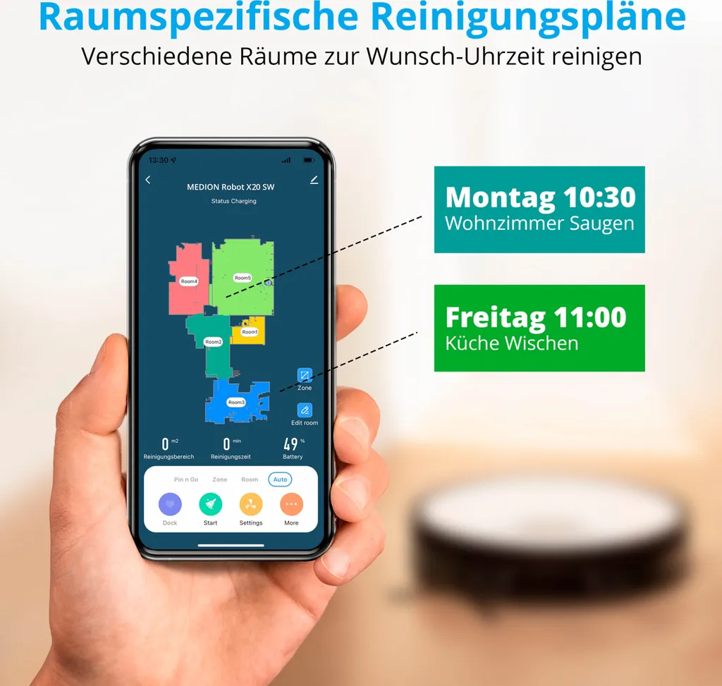MEDION Saugroboter Mit Absaugstation Und Wischfunktion X20 SW+ (Lasernavigation, Starke 3000Pa Saugkraft, Alexa 2in1 Roboterstaubsauger, Präzise Kartenerstellung, Go & No Go Bereiche, Mehrere Etagen)