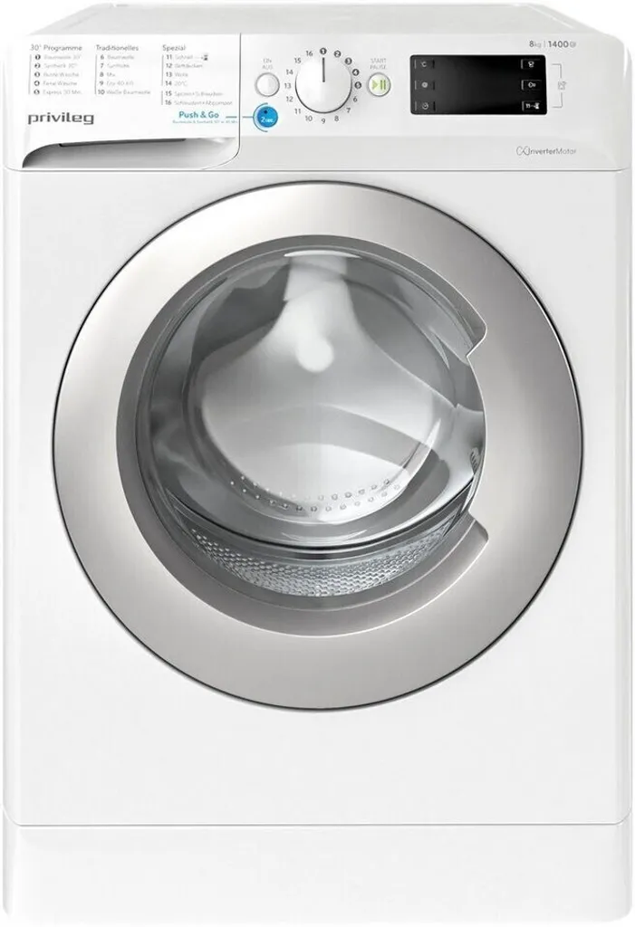 Privileg PWF X 853 N Freistehende Waschmaschine, Frontlader, Weiß, , Schleuder, 1400 U/min, 8 Kg Fassungsvermögen, 54 KWh/100 Zyklen, 48 Liter/Zyklus, Inverter-Motor, 59,5 Cm Breite, Startzeitvorwahl, Wasserauslaufschutz