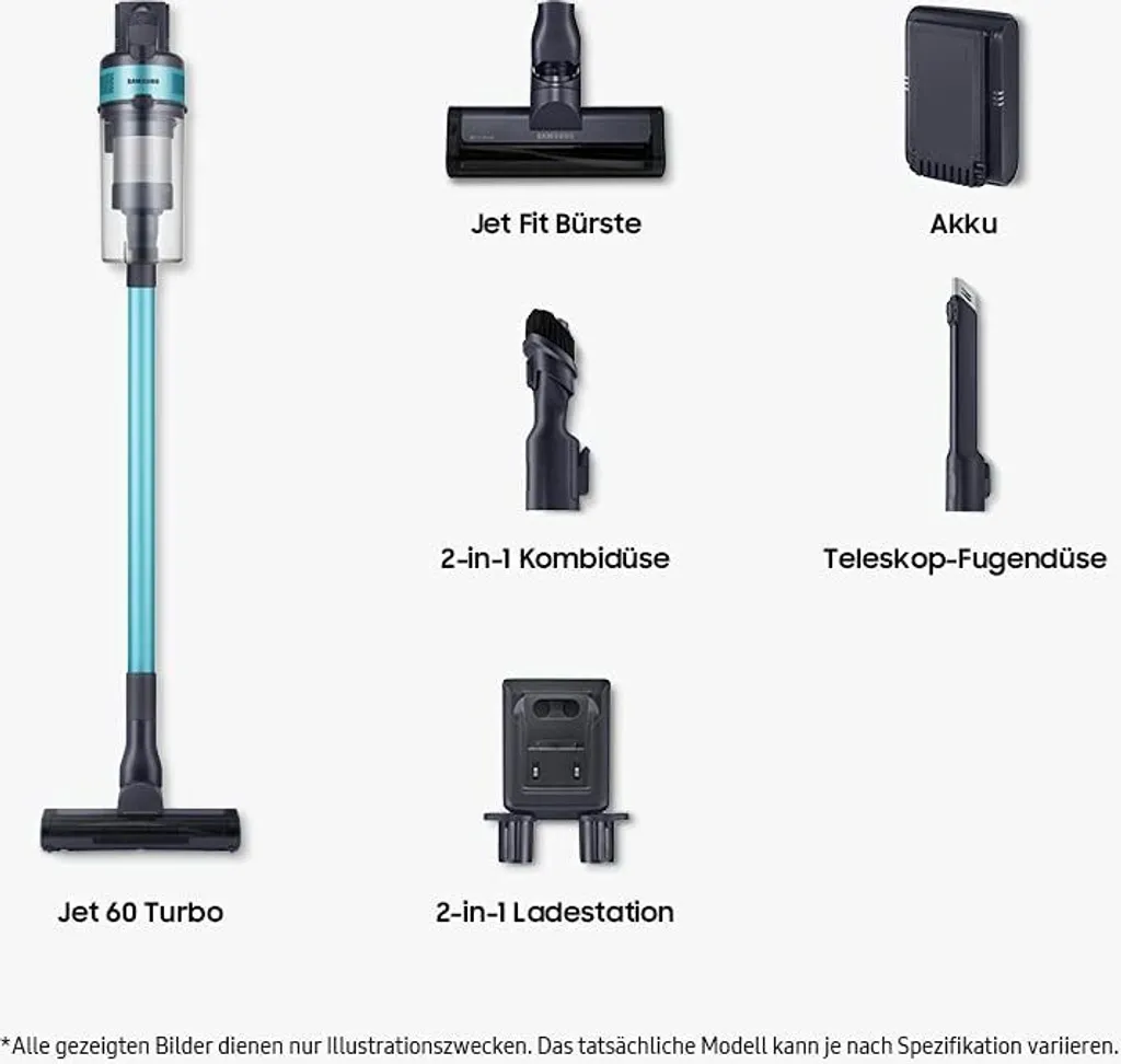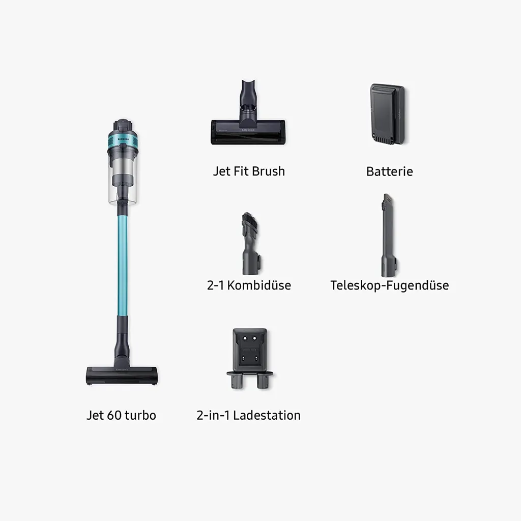 Samsung Jet 60 Turbo VS15A6031R1/EG, Akku-Handstaubsauger, Kabellos & Beutellos, Teal Mint, 410 W, 0.8 Liters, 86 Dezibel