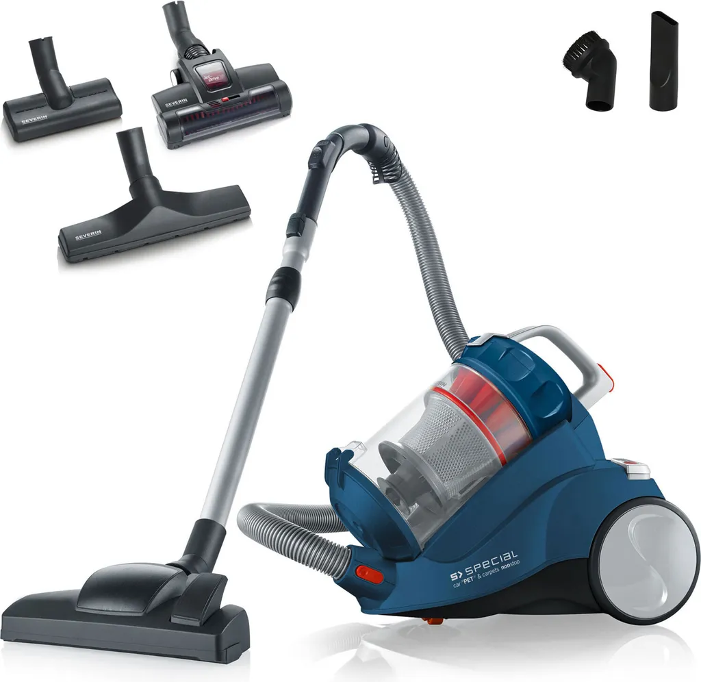 Severin MY 7119 S’SPECIAL CarPET & Carpets Nonstop Mutli-Cyclone Bodenstaubsauger Beutellos, HEPA14 Filter, XXL-Polsterdüse, XL-Parkettdüse, Turbobürste, 750 Watt