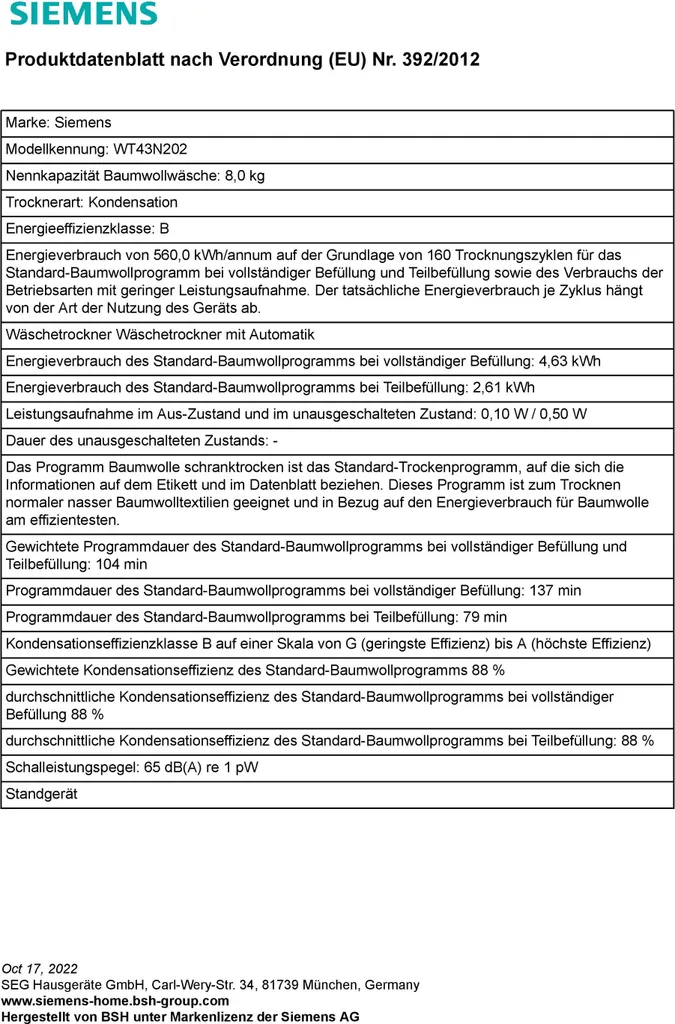 Schreibe die erste Rezension für „Siemens Kondenstrockner WT43N202 IQ300, 8 Kg“ Antwort abbrechen