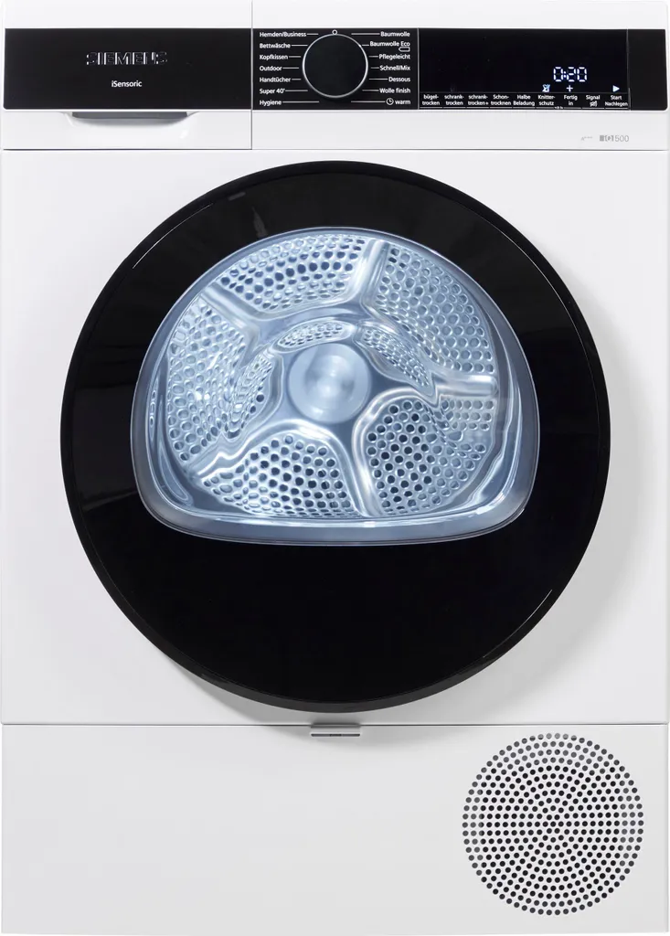 Siemens WQ33G2D40 IQ500 Wärmepumpen-Trockner, 8 Kg, AutoDry-Technologie Schonendes Und Präzises Trocknen, Super40′-Programm, SoftDry Trommelsystem Sanftes Und Schonendes Trocknen Weiß