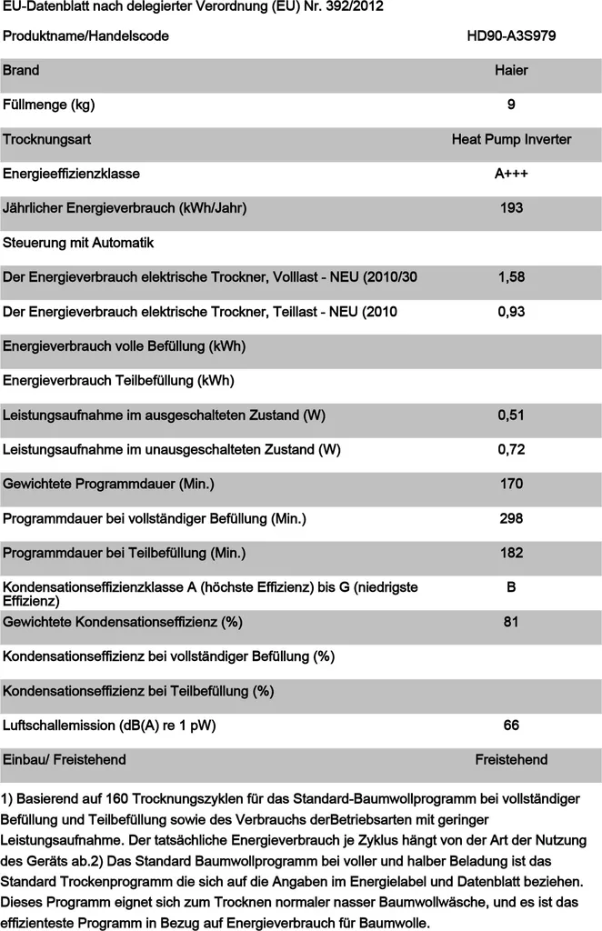 Schreibe die erste Rezension für „Trockner Wärmepumpentrockner Haier HD90-A3S979 9kg“ Antwort abbrechen