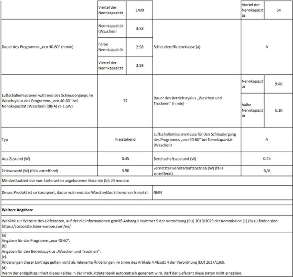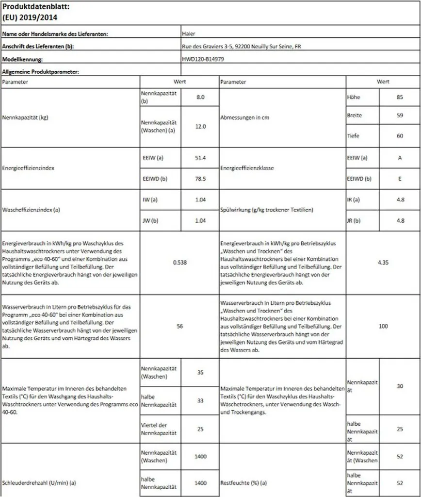 Schreibe die erste Rezension für „Waschtrockner 12kg Waschen 8kg Trocken XL Trommel HAIER HWD120 B14979“ Antwort abbrechen