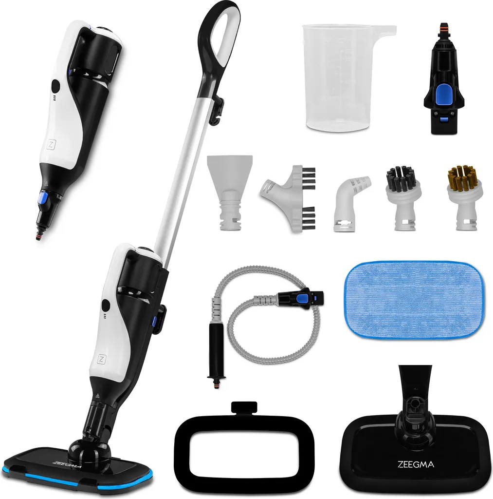 ZEEGMA PAAR Steam Dampfreiniger 15in1, Power 1400W, Reinigt Mehrere Oberflächen, Tötet Bis Zu 99,7% Der Bakterien Und Keime, Einstellbare Dampfleistung, 7 Aufsätze Für Verschiedene Anwendungen
